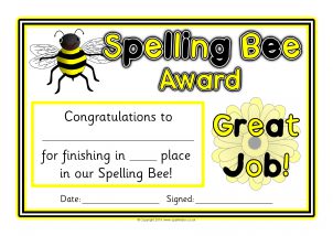 Spelling Bee Award Certificates (SB10421) A set of printable certificates to present to children who participate in your Spelling Bee competition.
