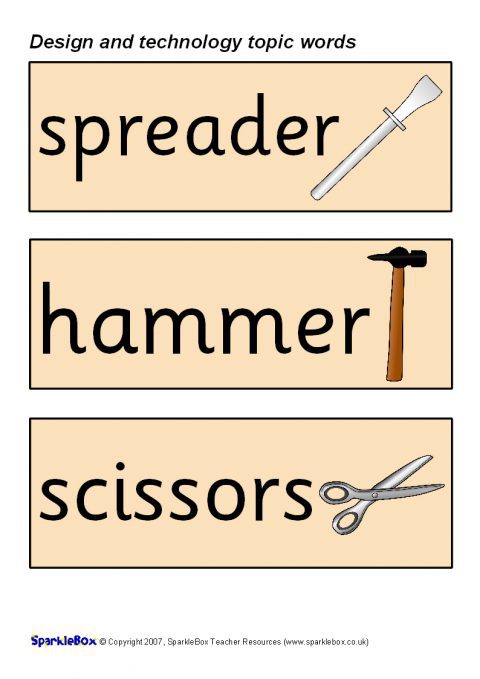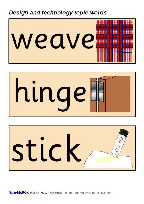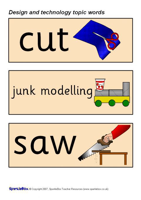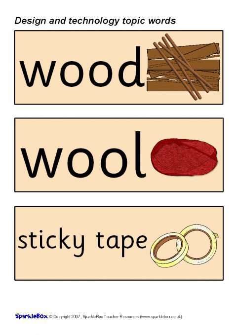 A useful set of word cards linked to design and technology. Can be used for classroom word banks linked to D&T or for labelling classroom displays. Most of the words have accompanying images.