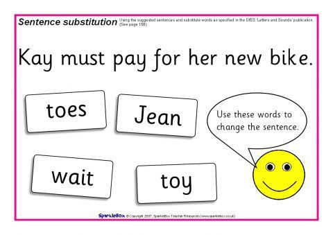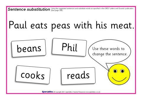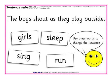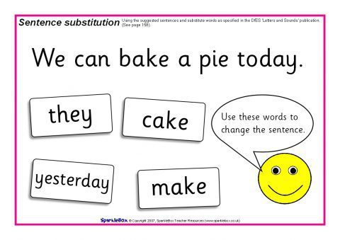 A set of 20 A4-sized printable activity mats where children can be challenged to make new sentences using the substitute words.