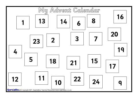 A simple Santa-themed Advent calendar front and back to print out on card.  Also includes a blank front and back for your pupils to design their own.
