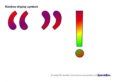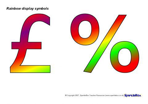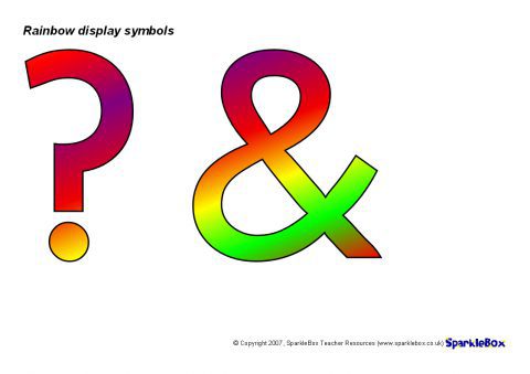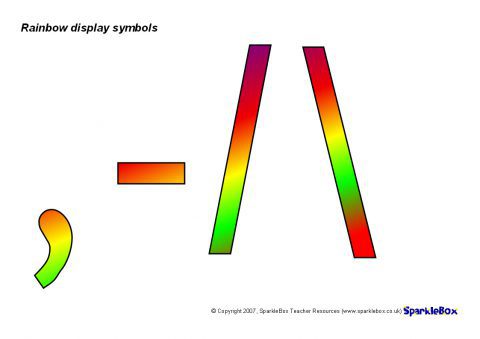 A PDF document with cut-out rainbow-coloured display symbols for use on your classroom displays.
