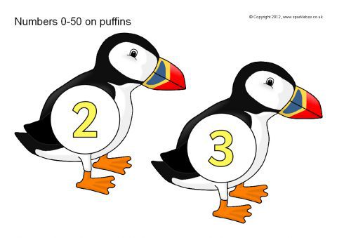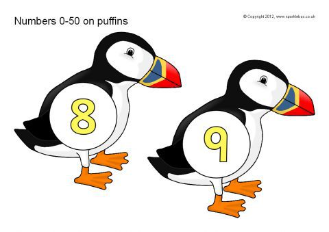 Numbers 0-50 on Puffins (SB1100) - SparkleBox