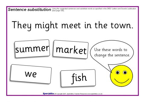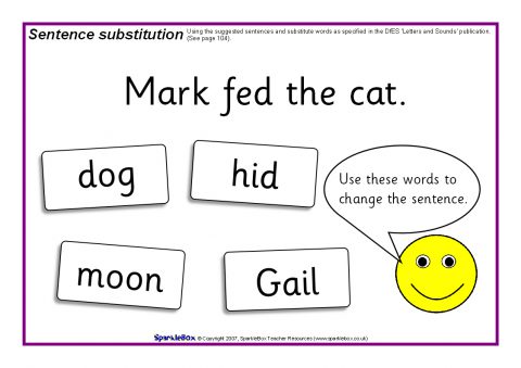 A set of A4-sized printable activity mats where children can be challenged to make new sentences using the substitute words.