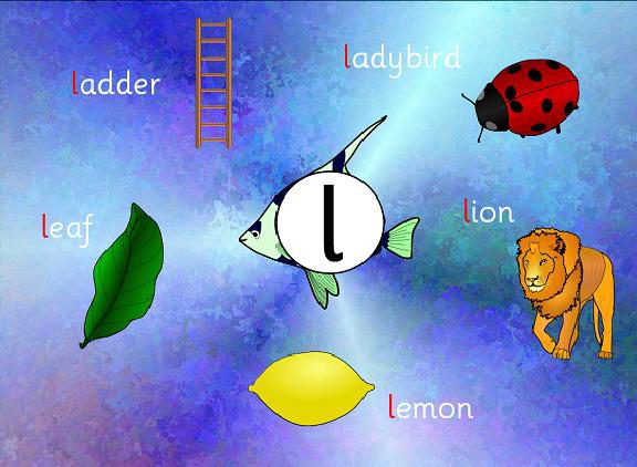 A teacher-controlled presentation for use with the whole-class or smaller groups.  As the mouse is clicked, objects beginning with ‘l’ appear along with the accompanying words.