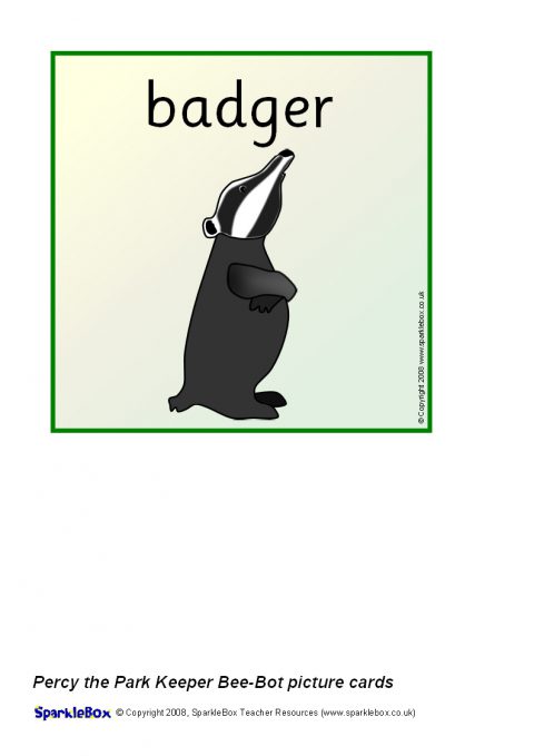 A set of printable cards for variety of uses.  Each card features animals and items connected with the popular story character Percy the Park Keeper.  The cards are all 15 by 15cm.