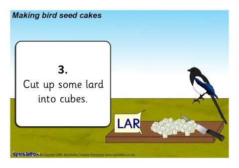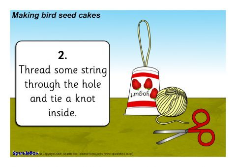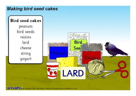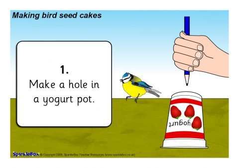 A fantastic set of instruction or ‘recipe’ sheets for making bird seed feeders in yogurt pots. Includes simple instructions with colourful illustrations and are ideal for use as discussion aids, on classroom displays, or when actually making your bird feeders.
