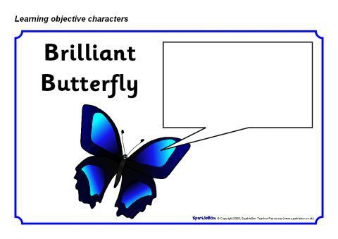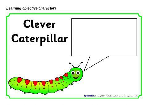 An additional set of 3 printable A4 sheets for you to write learning objectives on, featuring 3 characters: ‘Clever Caterpillar’, ‘Brilliant Butterfly’ and ‘Sensible Squirrel’.
