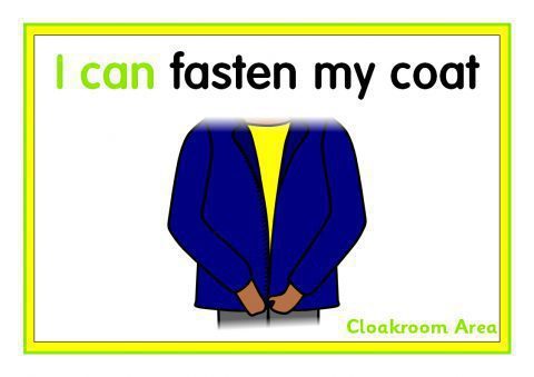 A useful group of signs with ‘I can...’ statements for use in your cloakroom area.  Includes ‘I can put my coat on/off’, ‘I can fasten my coat’, ‘I can keep the cloakroom tidy’, ‘I can hang my coat up’ and more.