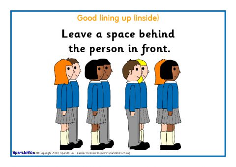 A set of 6 A4-sized posters showing rules for good lining up when inside.