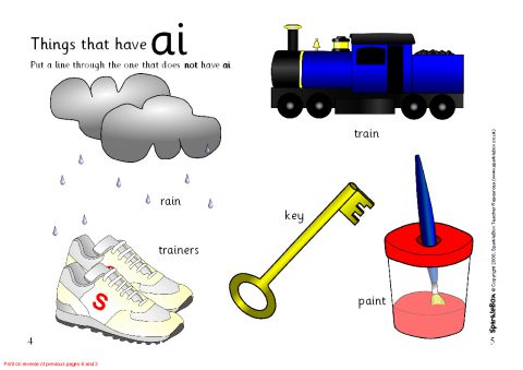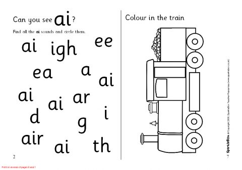 A set of sheets which can be assembled into an A5 folded booklet to give to pupils.  It includes activities to aid recognition of the ‘ai’ sound.  Ideal as a homework resource.