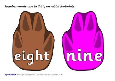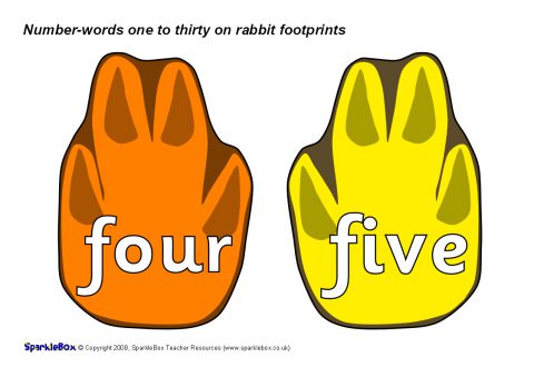 Number-Words Zero to Thirty on Rabbit Footprints (SB1267) - SparkleBox