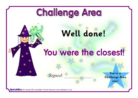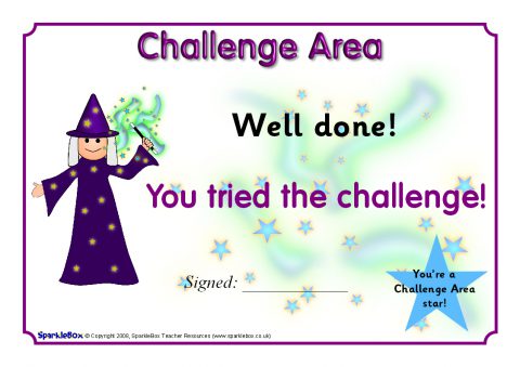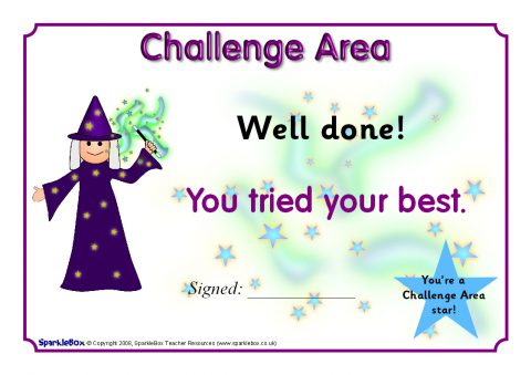 3 simple printable certificates to reward children for completing challenges in your Challenge Area.