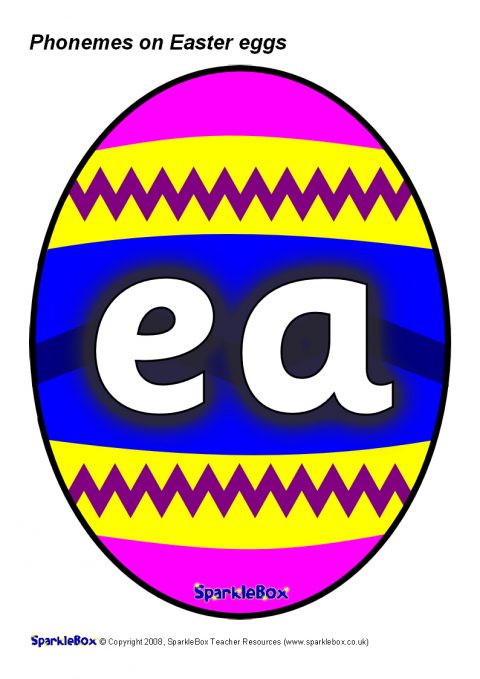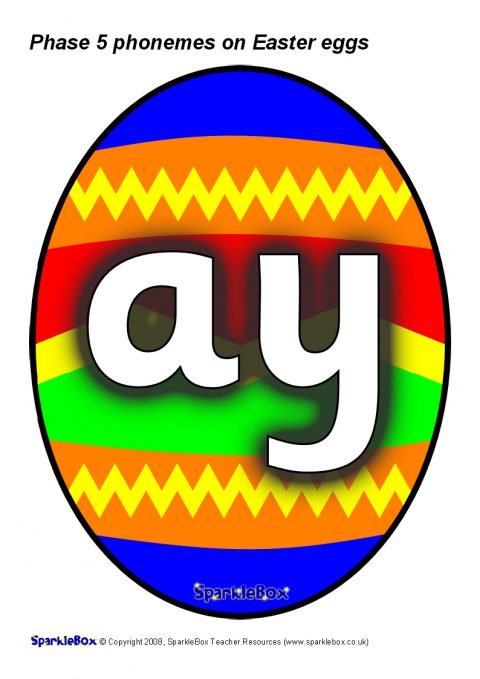 An additional set of 19 printable colourful Easter egg pictures with phonemes as specified in Phase 5 of the DfES ‘Letters and Sounds’ document.  Great if laminated for outdoor Easter egg hunts and children could build words using the eggs.