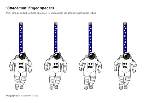 A set of printable ‘spacemen’ for your pupils to use for correct finger spaces when writing.