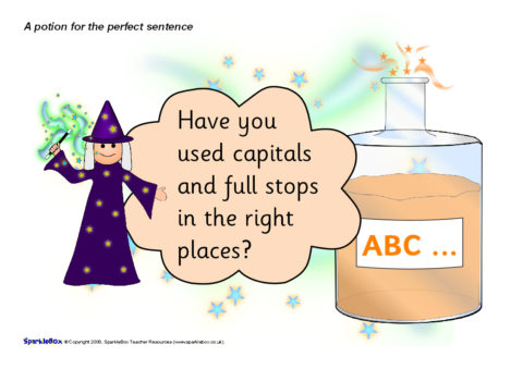 A set of printable posters with a wizard potion theme to act as reminders for children when writing sentences. A colourful addition to your classroom!