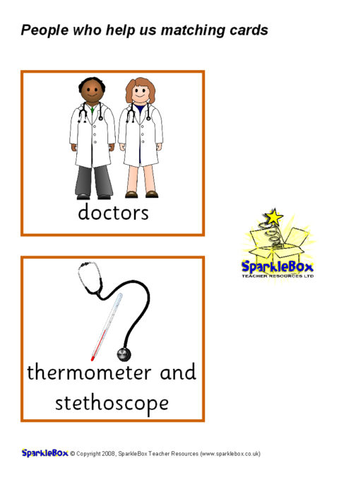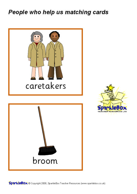 A set of cards where pupils can match the people who help us to their tools. Fire officers to hose and ladder, caretakers to the broom, paramedics to the ambulance, road workers to the pneumatic drill and more! Great to promote topic-related discussion.