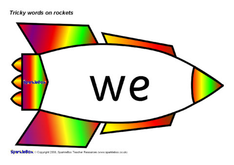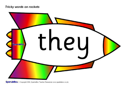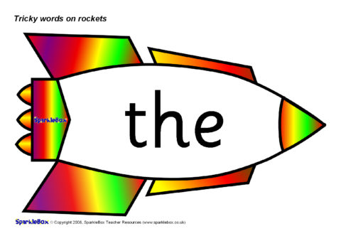 A PDF featuring colourful rocket images with the 41 tricky words as specified in the DfES ‘Letters and Sounds’ publication. These are ideal for displaying in your classroom. Print size can be shrunk using the ‘Print scaling’ function in Adobe Reader.