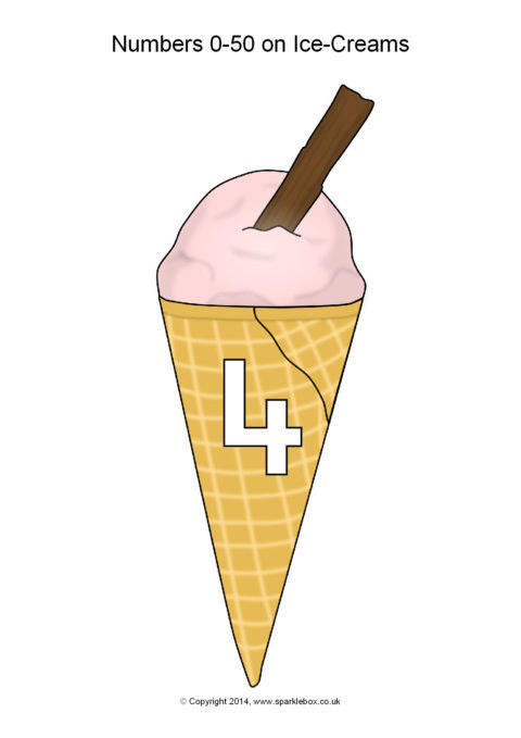 Numbers 0-50 on Ice-Creams (SB1357) - SparkleBox