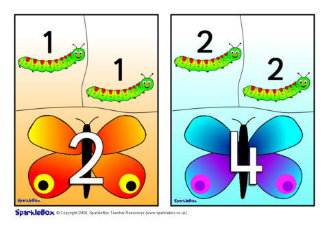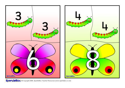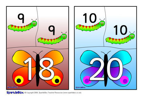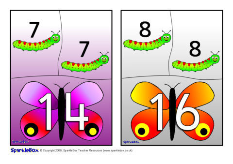 A set of 10 printable mini 3-piece jigsaws where children can match the caterpillars with numbers to the doubles on the butterfly. This will be a fun activity and is a great way for encouraging children to recall doubles from memory.