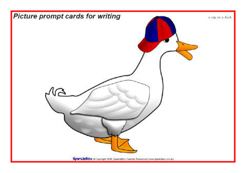 A set of 27 printable A4-sized simple pictures that can act as prompts for caption writing. Includes ‘a cap on a duck’, ‘a dragon on a rainbow’, ‘three clowns on swings’, ‘a rat at a picnic’ and loads more! A great stimulus to encourage children to write simple captions.