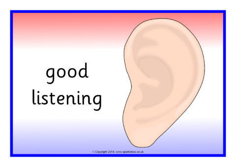 A set of printable classroom posters showing important reminders for ‘good listening’.