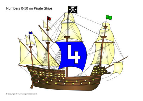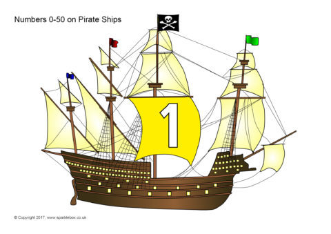 Numbers 0-50 on Pirate Ships (SB1383) - SparkleBox