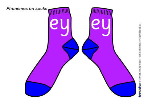 A set of 19 pairs of colourful printable socks with the additional phonemes from Phase 5 phonemes specified in the DfES ‘Letters and Sounds’ document. Great for matching and sorting games linked to phonics, or for displaying on a clothes line in your classroom.