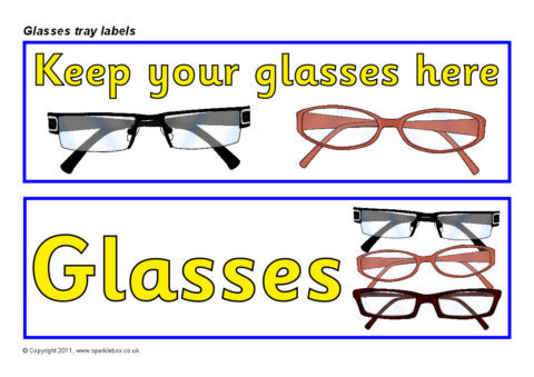 Two basic labels for use on a tray where pupils can keep their glasses safe when not in use.