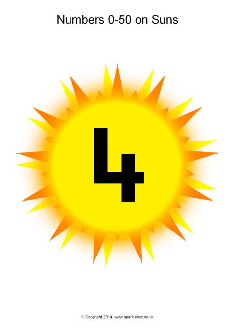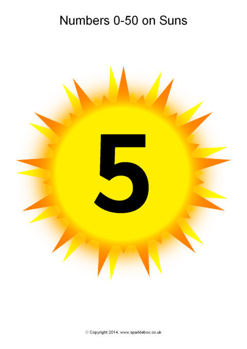 Numbers 0-50 on Suns (SB1425) - SparkleBox
