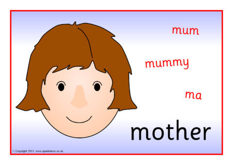 A set of posters showing pictures and words for family various members.