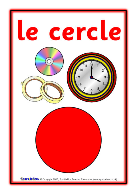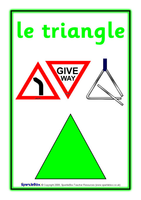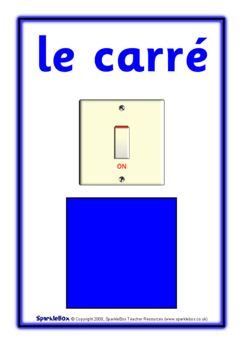 A set of simple printable posters with common 2D and 3D shapes in French.