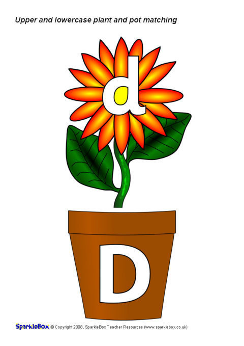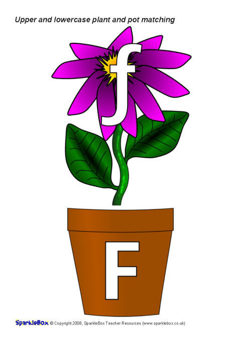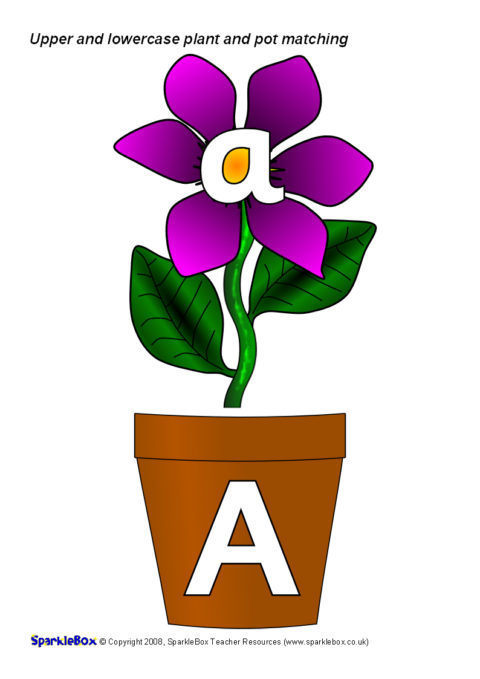 A set of colourful printable flowers and pots with the lowercase and uppercase alphabet letters.  Children match the lowercase plants to the uppercase pots.