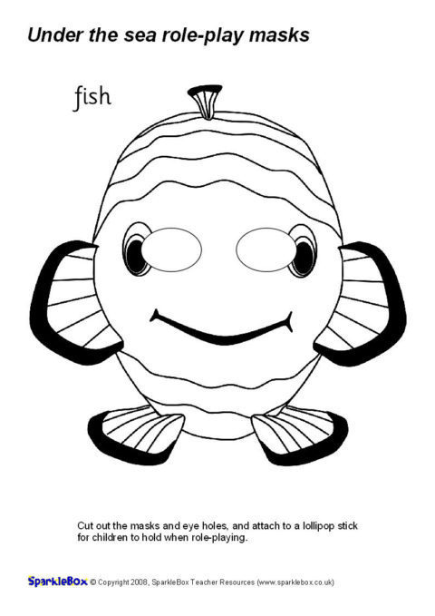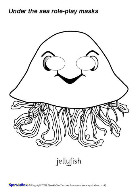 A fun set of 9 role-play masks with sea creatures such as clown fish, shark, ray, jellyfish, starfish, puffer fish, octopus and more - for children to colour themselves.