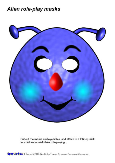 A fun set of printable alien masks for role-play.  Simply print out, laminate, cut out and attach to lollipop sticks.