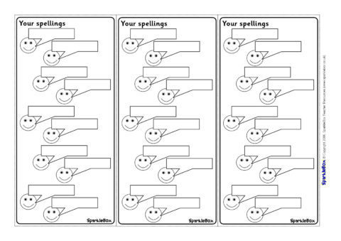 A set of fun sheets (3 to an A4 page) that you can add your pupil’s spelling words to for them to learn at home.  Includes editable versions for Microsoft Word.