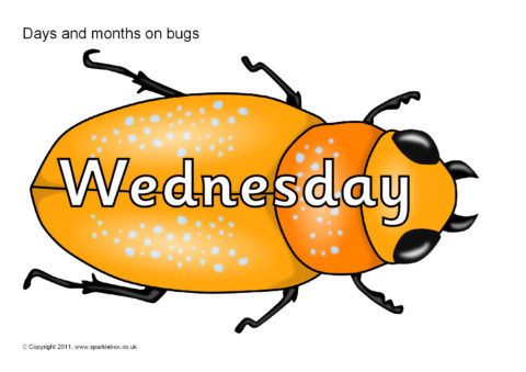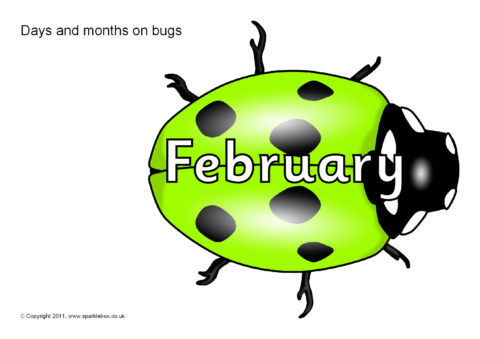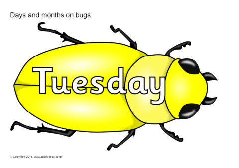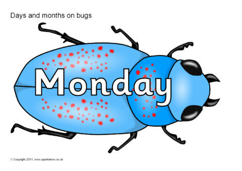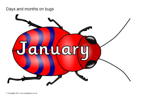 A set of colourful bugs with the days of the week (Monday-Sunday) and the 12 months of the year.