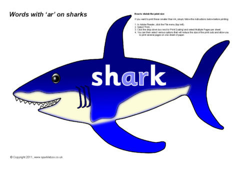 Words with ‘ar’ on Sharks (SB1568) - SparkleBox