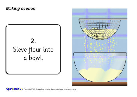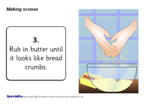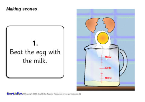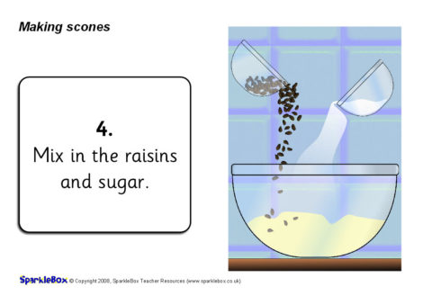 A useful set of simple visual aids showing how to make scones in 9 steps.  It includes instructional text and a list of ingredients.  Also perfect for use in a classroom display.