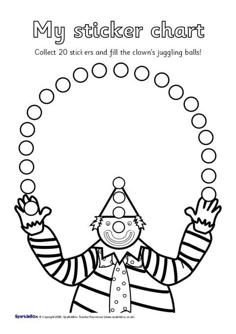 A set of fun printable sticker reward charts with space for 20 stickers. Featuring a ladybird, clown, leopard, aeroplane, alien and more! A fun way for your children to collect reward stickers.