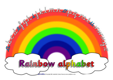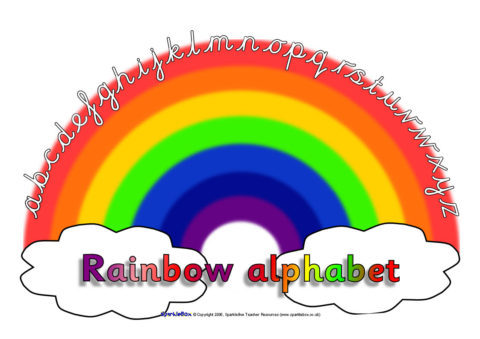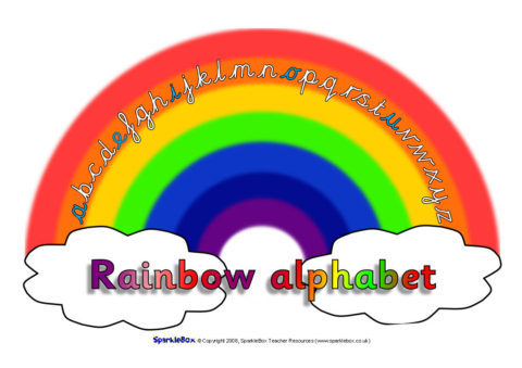Some colourful printable mats with the alphabet in an arc above a rainbow, using cursive script.  These are particularly good for use with dyslexic pupils as they find it easier to recognise and learn sounds in an arc formation.