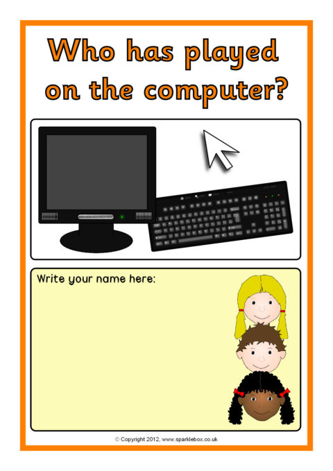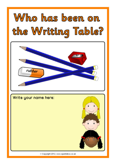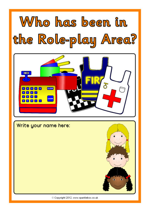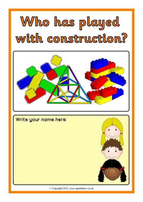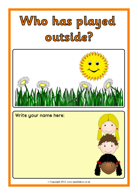 A set of A4 sheets to print and laminate where children can sign their name when they have carried out activities during the day. A good way of encouraging children with their name writing, as well as keeping a record of who has been where.
