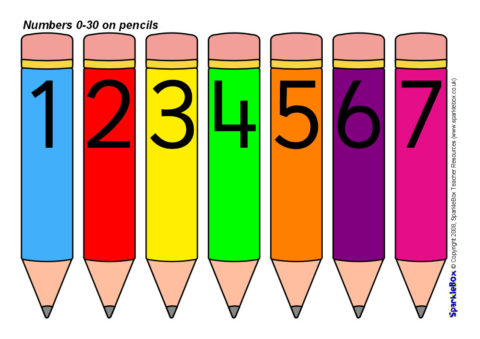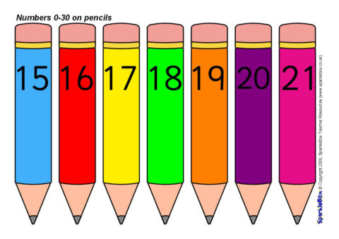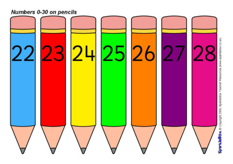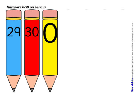 Numbers 0-30 on Pencils (SB1643) - SparkleBox