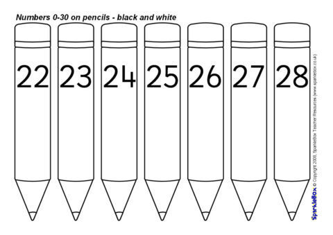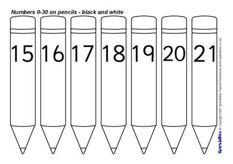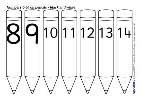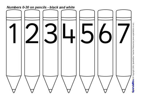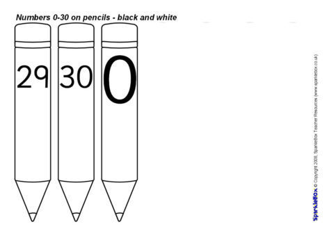 Numbers 0-30 on Pencils – Black and White (SB1655) - SparkleBox