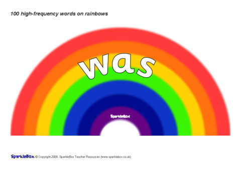 A set of printable rainbow images featuring the 100 high-frequency words as listed in the DfES ‘Letters and Sounds’ publication.