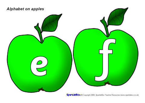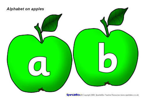 The 26 letters of the alphabet presented on apples.  Great for a classroom ‘sound tree’ display.