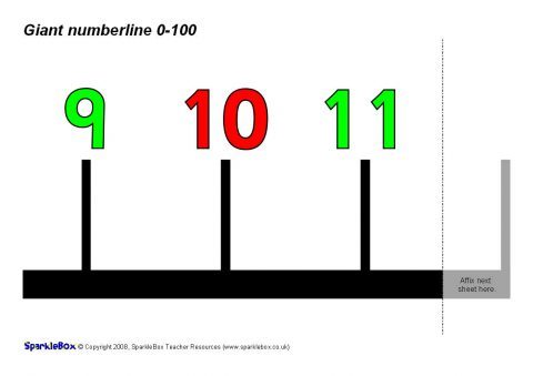 Assemble this simple giant number line in your classroom from 0 to 100 (or lower to suit your needs). Odd and even numbers are colour-coded, as are tens.
