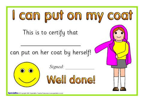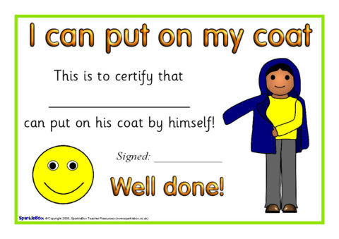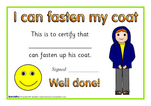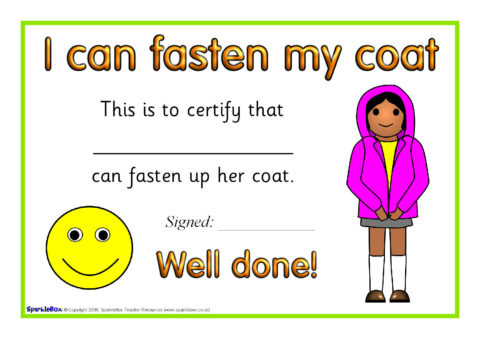 A set of certificates to celebrate achievement when children can fasten or put their coat on.