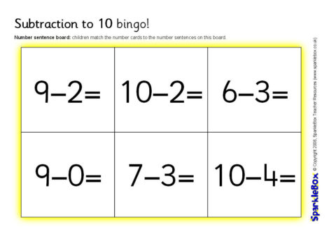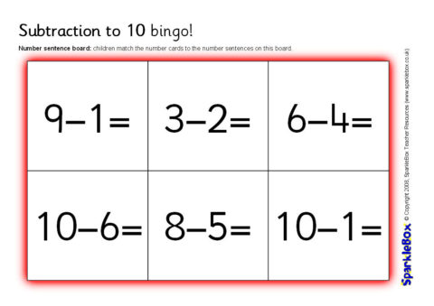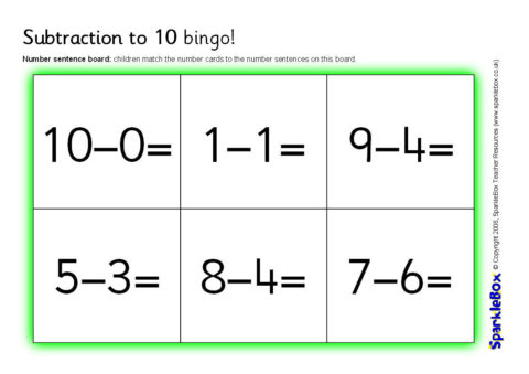 Subtraction to 10 Bingo (SB1809) - SparkleBox