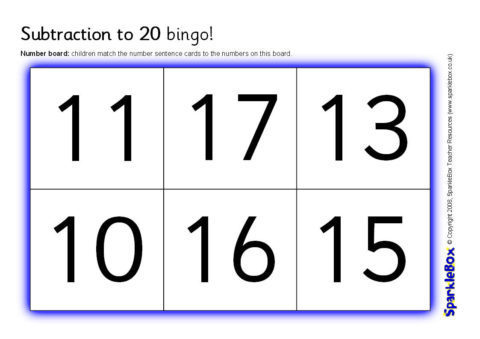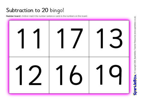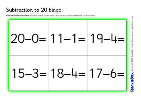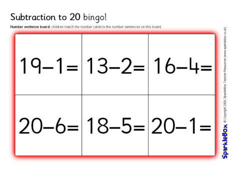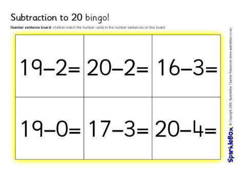 Subtraction to 20 Bingo (SB1822) - SparkleBox