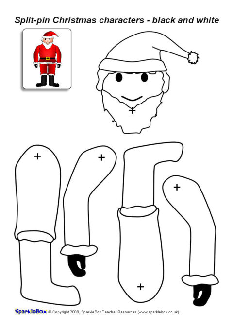 Split-Pin Christmas Characters – B&W (SB1906) - SparkleBox